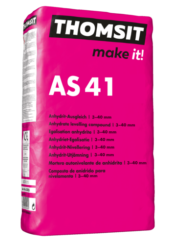 Kalciumsulfátová samonivelační stěrka bez pnutí, pro vytváření podkladů před aplikací všech měkkých podlahových krytin. THOMSIT AS 41 lze použít na vhodné: